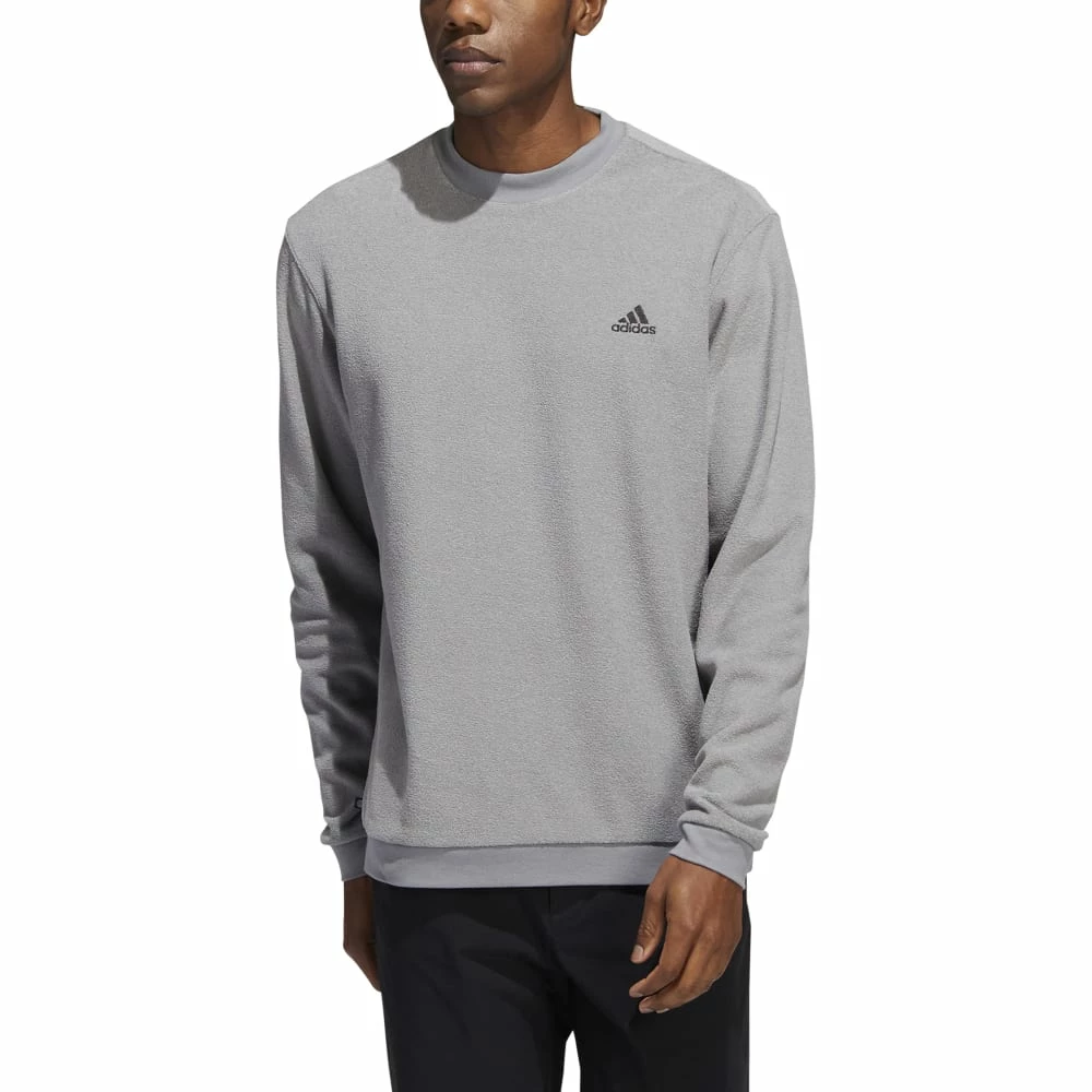 Keep warm on and off the golf course. This adidas crewneck sweatshirt has a cosy feel to keep you comfortable through chilly rounds. The cuffed sleeves ensure a stay-put fit so you can swing through without distractions. Wear it over a tee or polo shirt when the temperature drops.