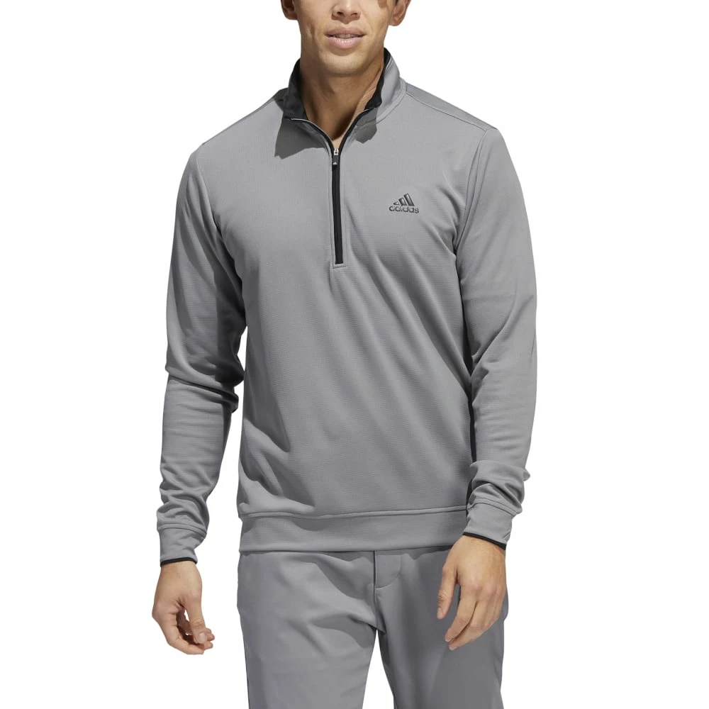 Chilly weather calls for a lightweight layer. This adidas golf pullover is made of soft knit for comfort on the course. Moisture-absorbing AEROREADY keeps you dry, and built-in UV coverage lets you play with confidence on sunny days.
