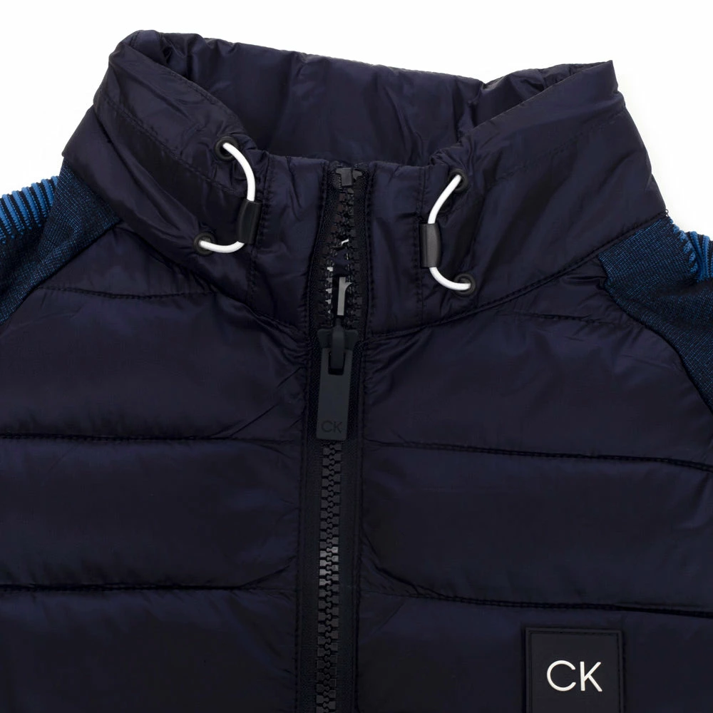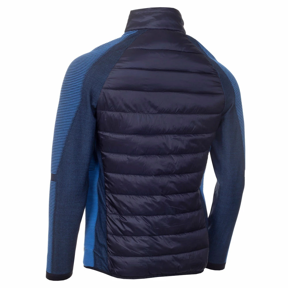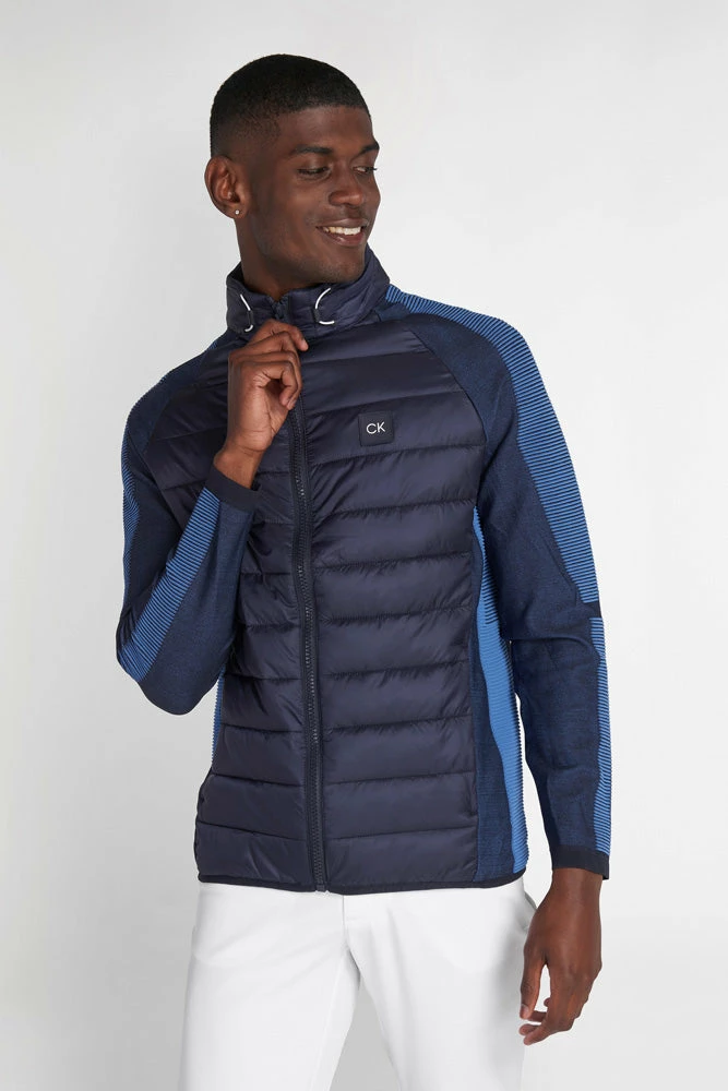 Durable performance and contemporary styling ensure the Dynamo tech knit jacket from Calvin Klein golf is a standout garment from the Chill Force range this season. This high-spec fitted jacket features padded panels front and back with super stretchy tech engineered knit sides and sleeves with a textured tonal finish. Chill Force outer layer technology will perform across a variety of pursuits.