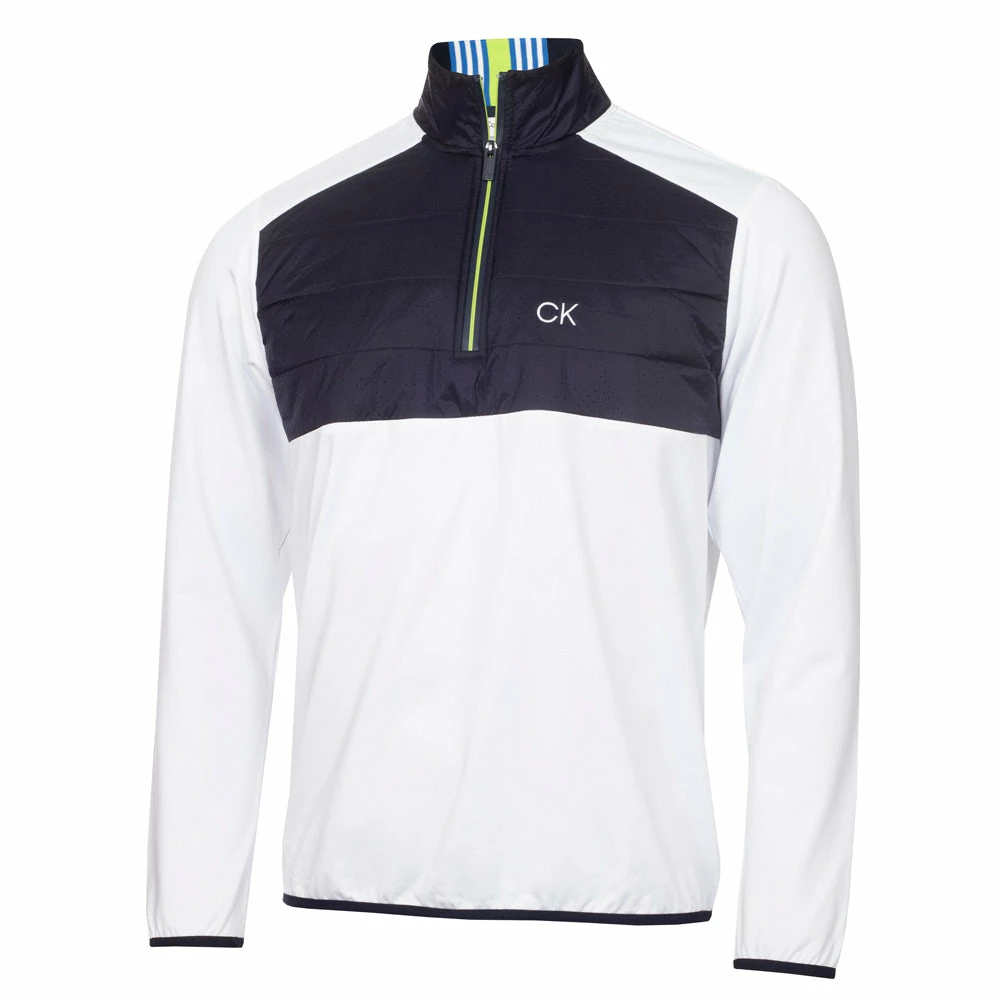 Defeat the ever-changing weather with the Calvin Klein Forest Lake Half zip top from the Chill Force product series – a stunning mid-layer transitional piece for your wardrobe this season. Featuring a woven padded front panel and a modern chunky zipper with a toasty mock neck collar this jacket will provide the warmth you need to play your best game. Contrast stripes on the inside back neck for a pleasing colour pop.