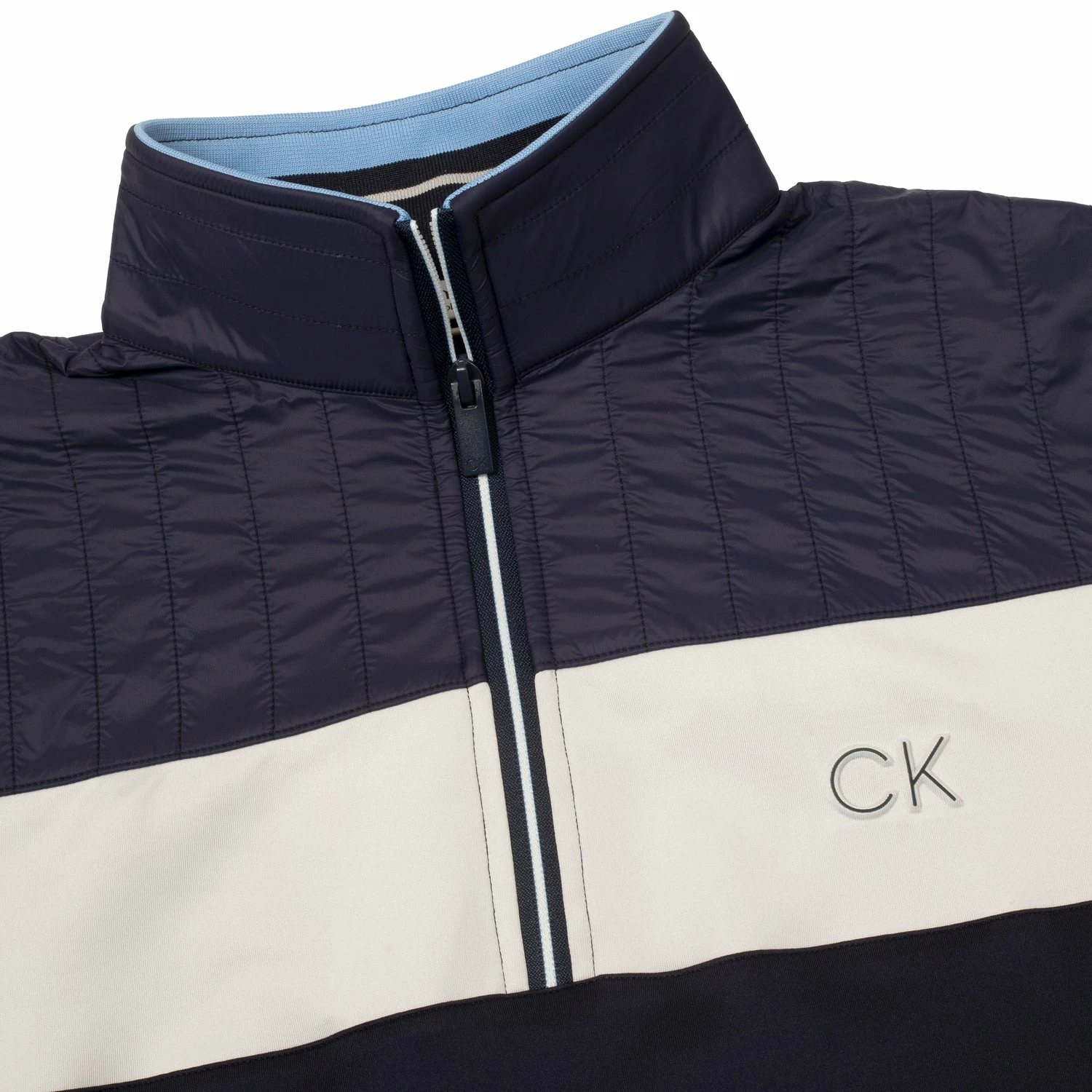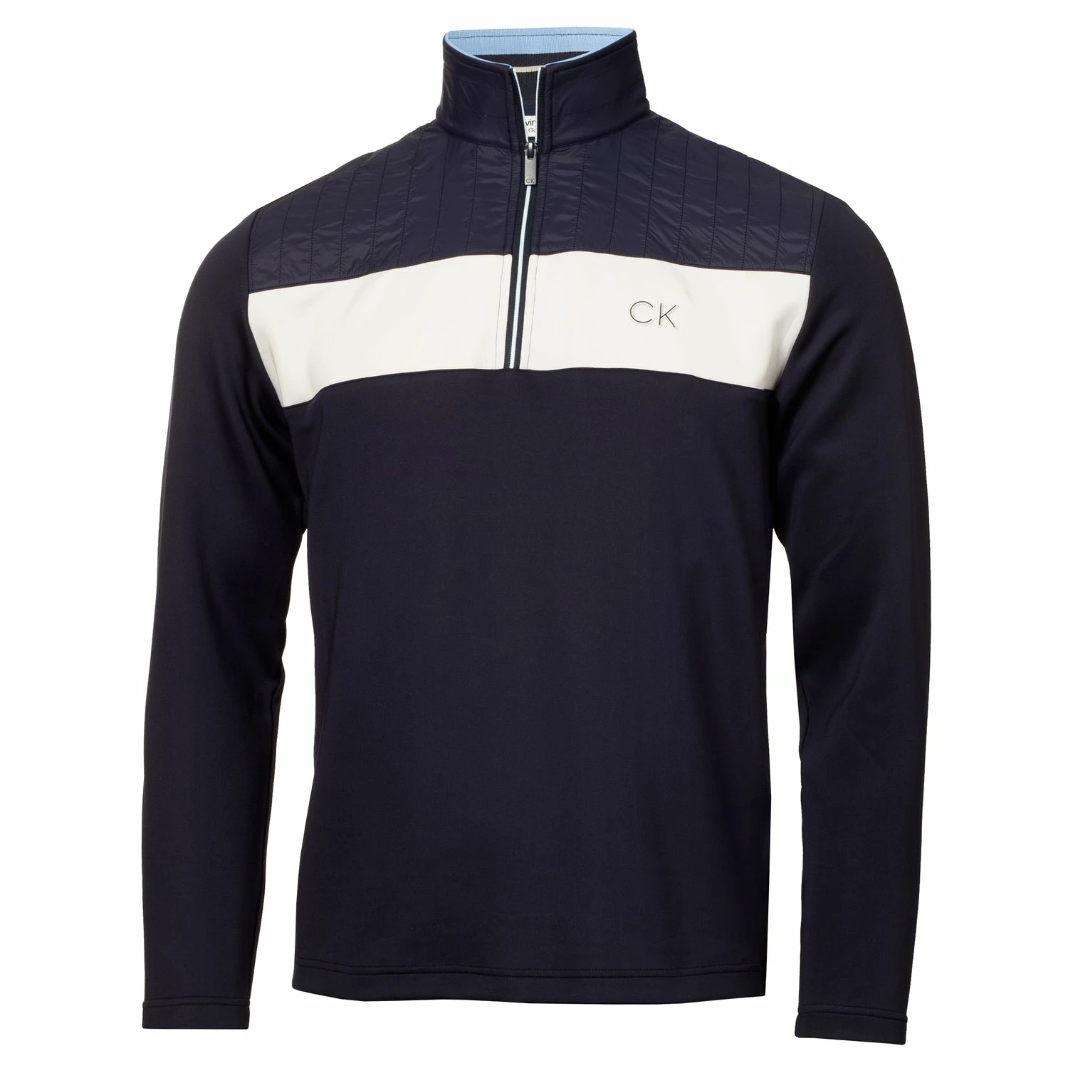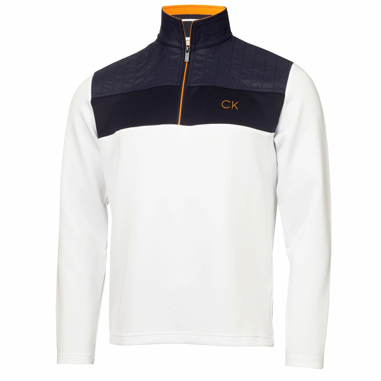 Conquer the ever-changing weather with the Calvin Klein Danvers ¼ zip top from the Chill Force product series - a stunning mid-layer transitional piece for your wardrobe this season. Featuring a nylon quilted front and back yoke with a modern exposed zipper and snug mock neck collar this jacket will provide the warmth you need to play your best game. Contrast stripes on the inside back neck for a pleasing colour pop.