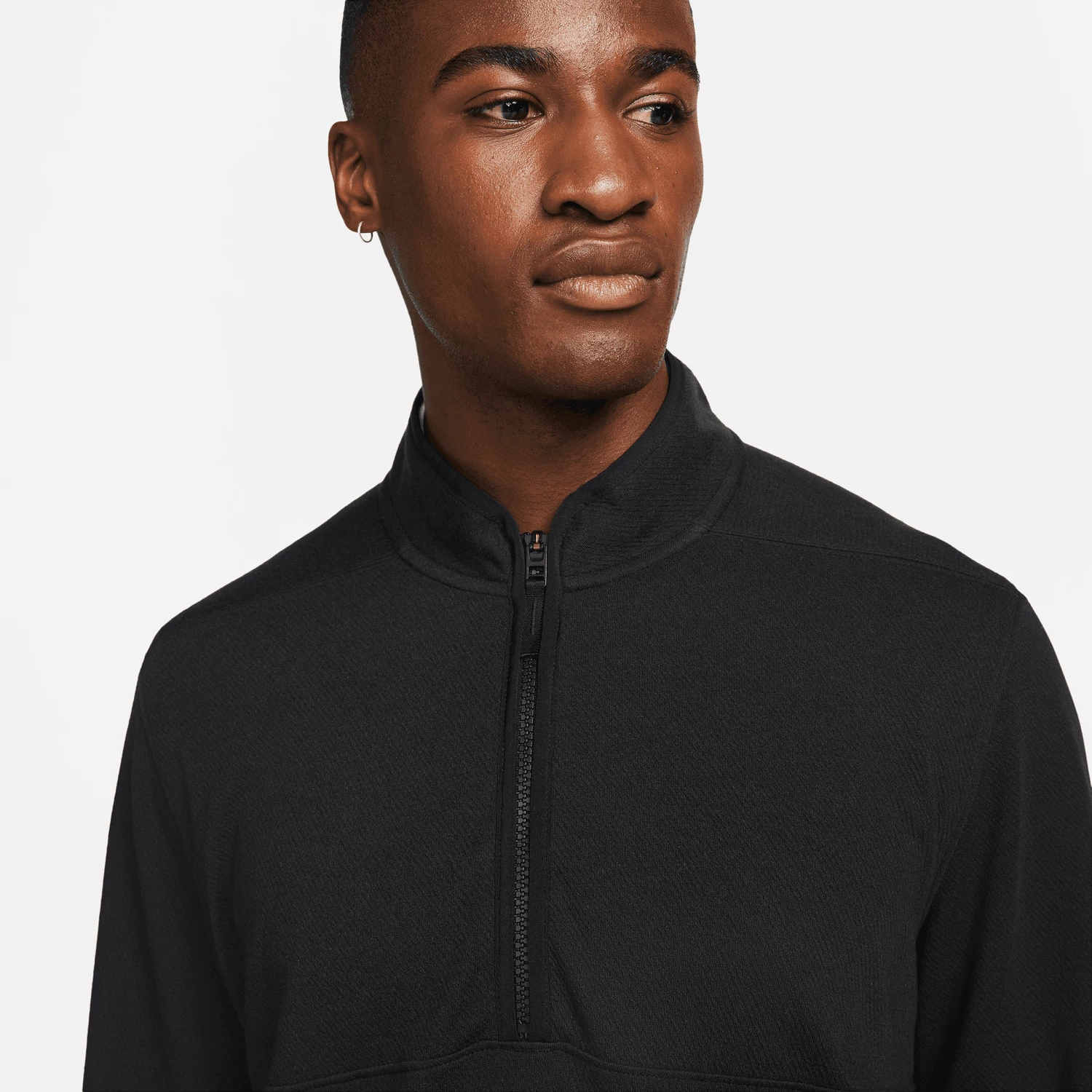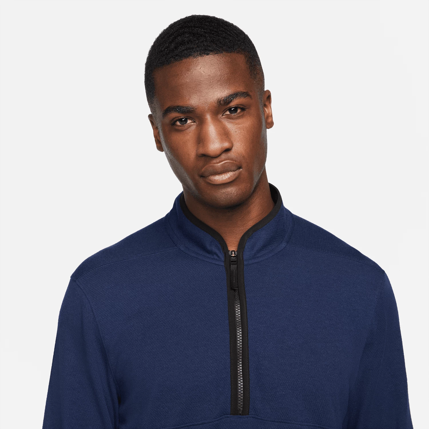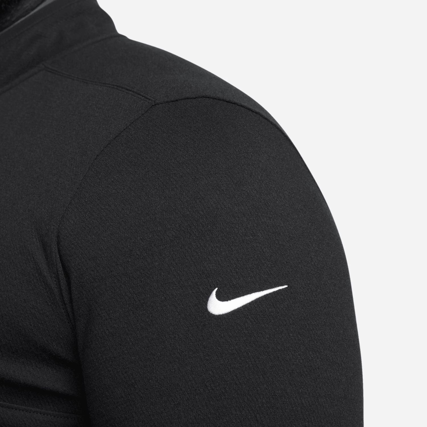 The Nike Dri-FIT Victory Top puts a soft spin on comfort. Its lightweight fabric pairs the look of your favorite sweater with the performance of technical mesh. Plus, the notch in the front of the collar lets you address the ball without fabric or a zipper bunching under your chin.