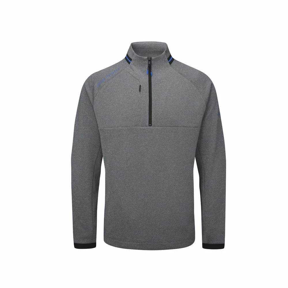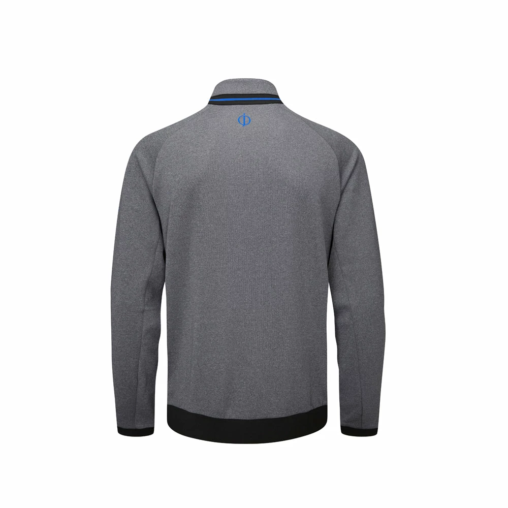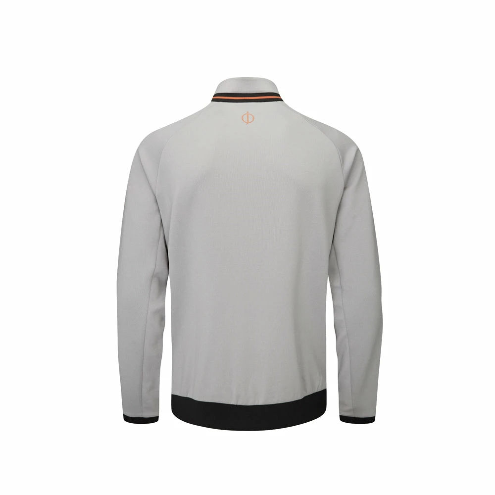 The Tarren half zip mid layer features a hint of color and modern collar design to maintain the distinct Oscar Jacobson look. Invisible side pockets provide a flawless finish and additional functionality. Elasticated cuffs and enhanced rear hem ensure comfort and movability. The polyester blend stretch fabric offers first class flexibility for unhindered performance on the course. Oscar Jacobson logo right shoulder and back neck.