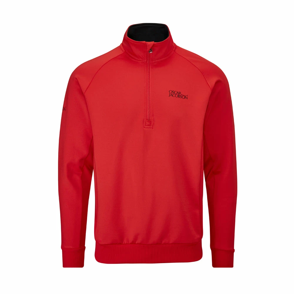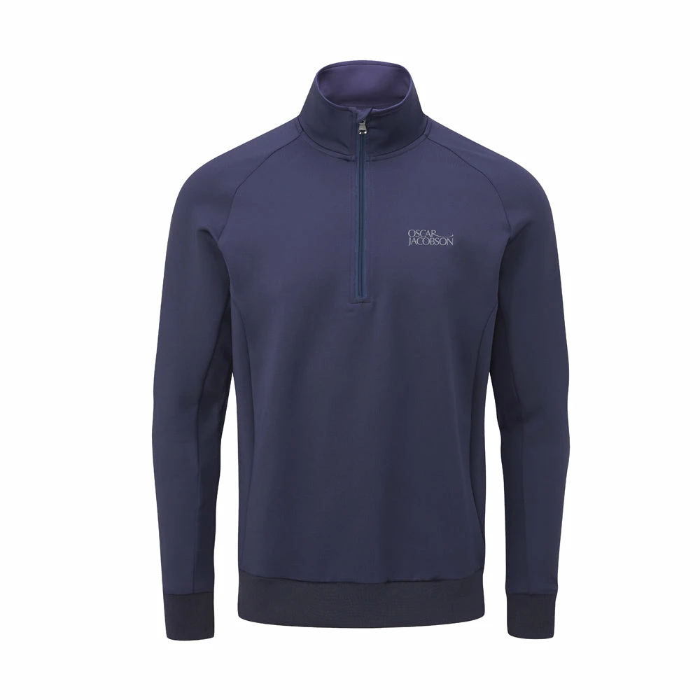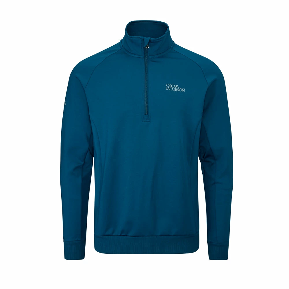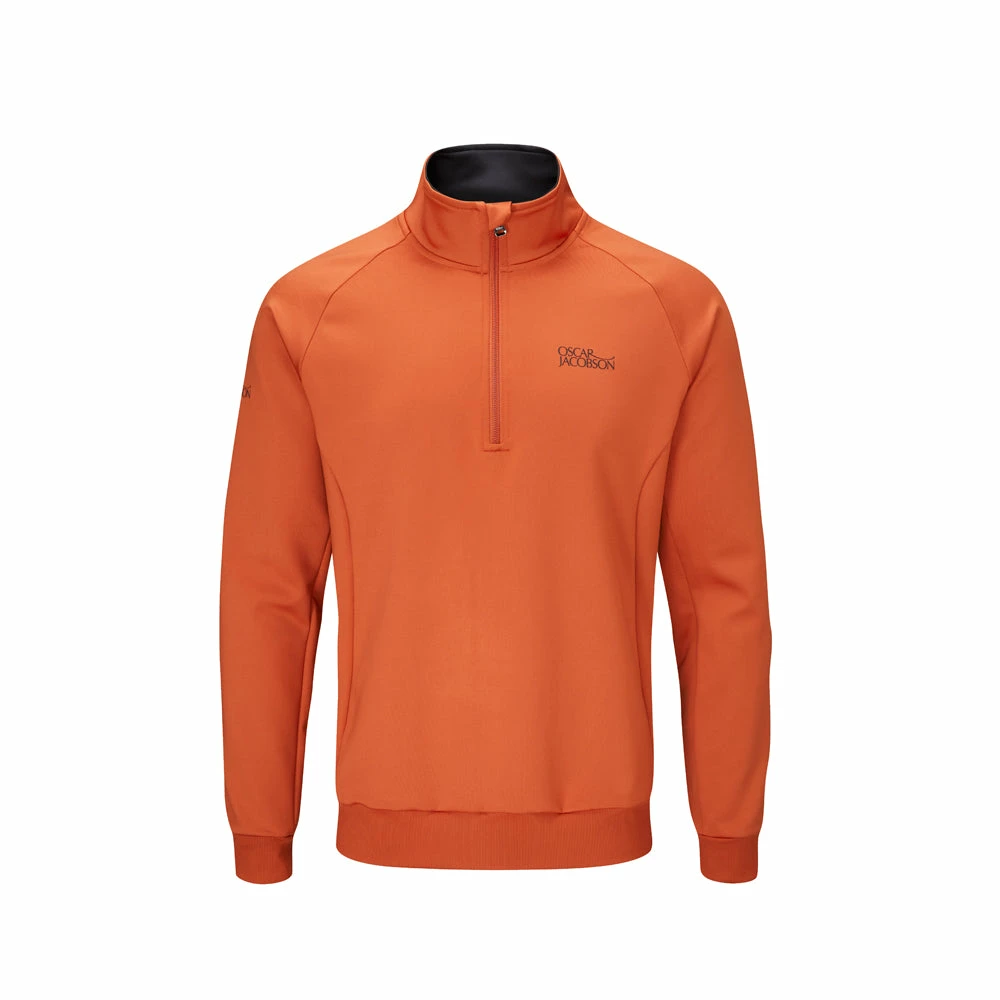 Oscar Jacobson Trent Tour 1/2 Zip Modern Pullover is a modern technical stylish pullover in double jersey knit fabric. Polyester and elastane fabric blend offers enhanced versatility and durability as well as exceptional freedom of movement. Soft brushed inside fabric provides a high level of comfort as well as enhanced body heat retention. This is a great looking piece that performs on the course.