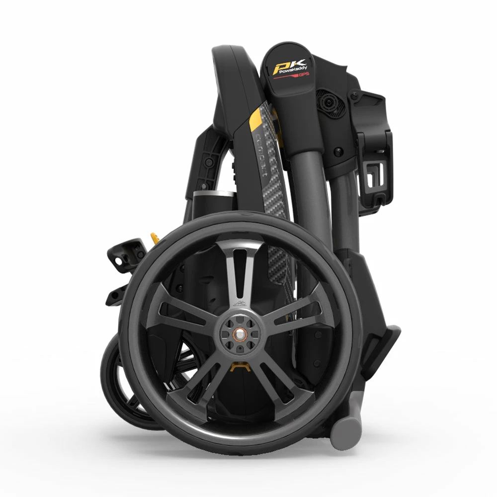 The all–new CT8GPS affords golfers the opportunity to enjoy smarter power. This model boasts a fully–integrated GPS, accessible via anew 3.5”TFT full–colour Touch screen widescreen display, making it the smallest, most intelligent ultra–compact golf trolley in the world. This high–performance model comes pre–loaded with over 40,000 courses worldwide with no annual fees or subscriptions.Simple–2–FoldTM system in the CT series collapses 20% smaller than the previous PowaKaddy Compact C2i models and 35% smaller than its nearest competitor on the market. The CT8GPS is the world’s smallest Touch screen GPS golf trolley