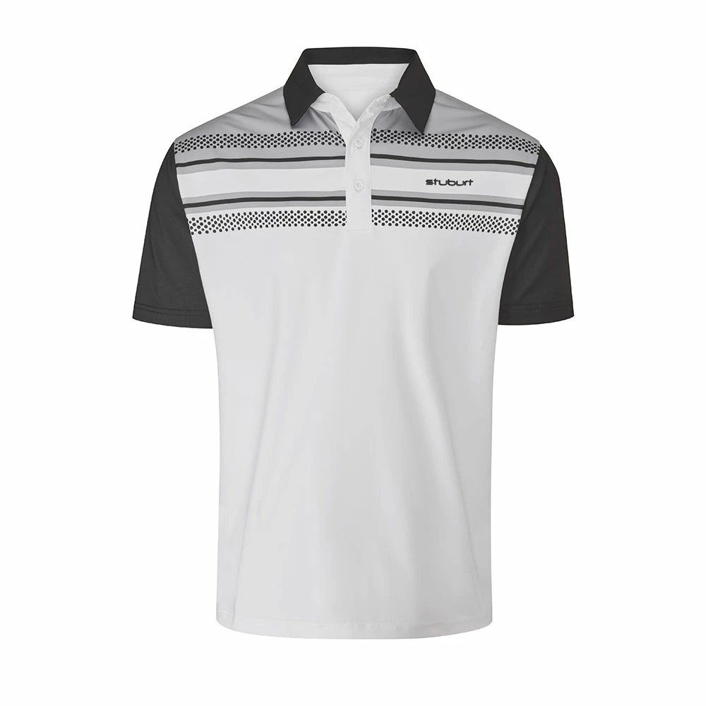 The Chambers polo features a subtle intricate repeated print on the chest that contrasts with the block colour sleeves and collar, making this polo perfect for the modern golfer. Made with a lightweight, breathable and functional stretch material and DRI-Back moisture transfer technology, the Chambers is a stylish, high performance option.