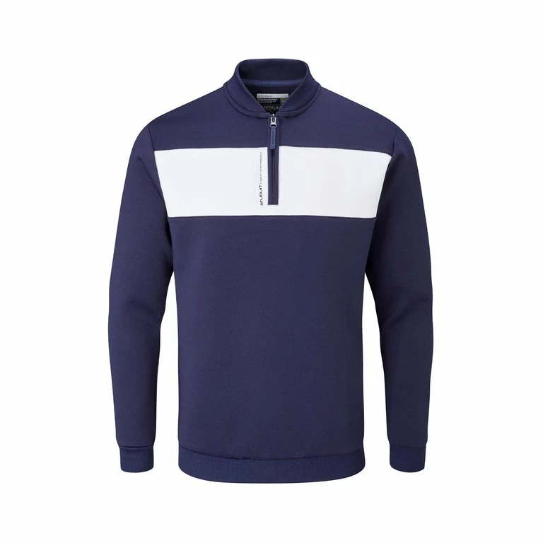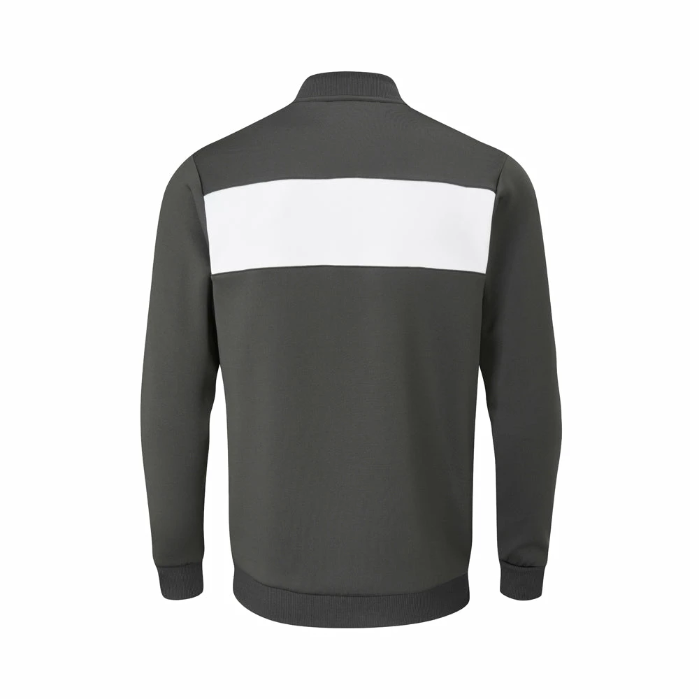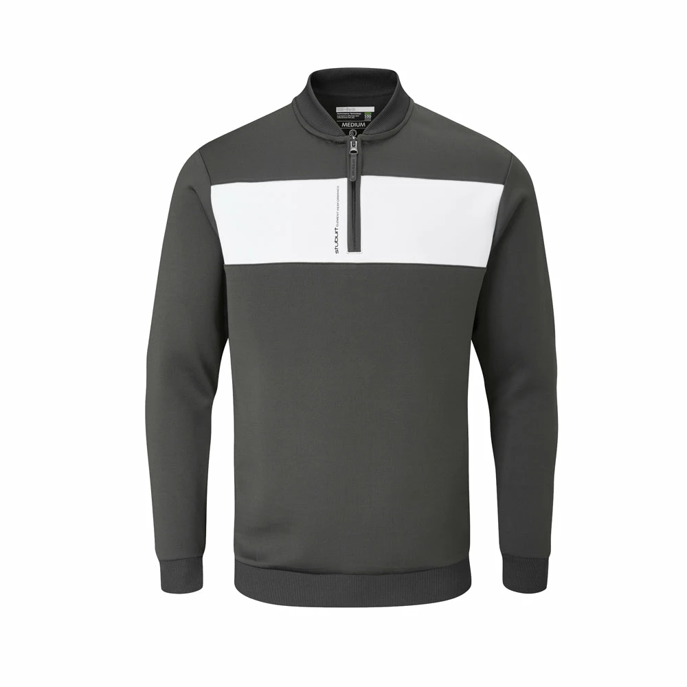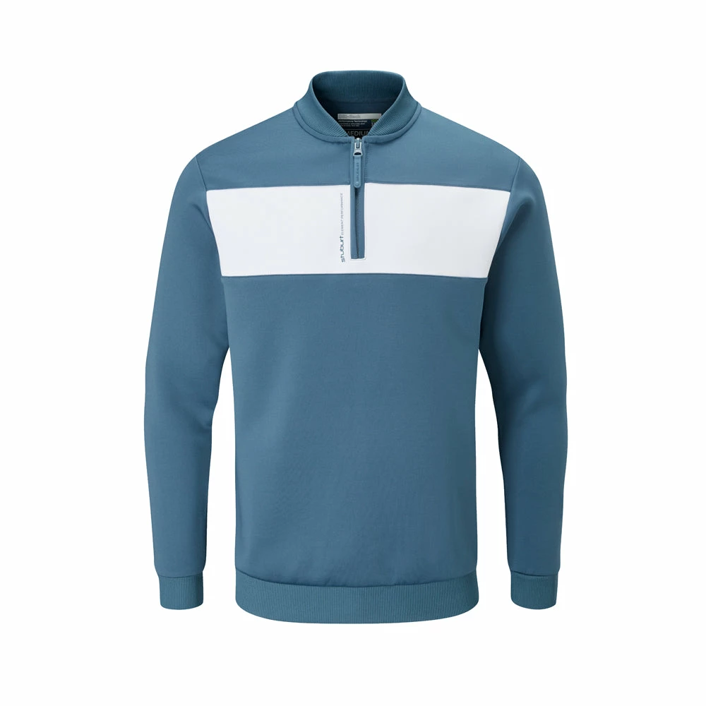 Half zip sweater with modern ribbed collar, cuffs and waistband to provide full comfort and movement whilst on the course. The contrast panel keeps this product on trend, whilst the thermal properties keep it practical and offers warmth