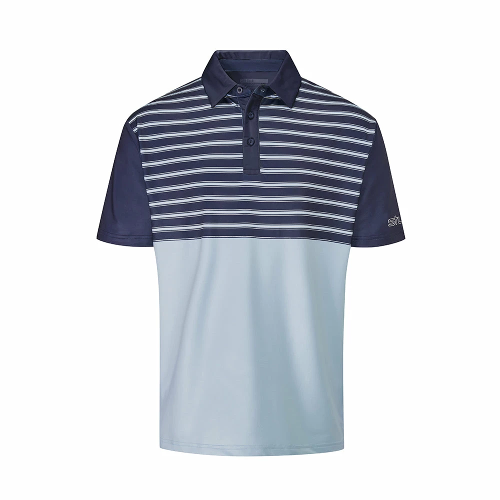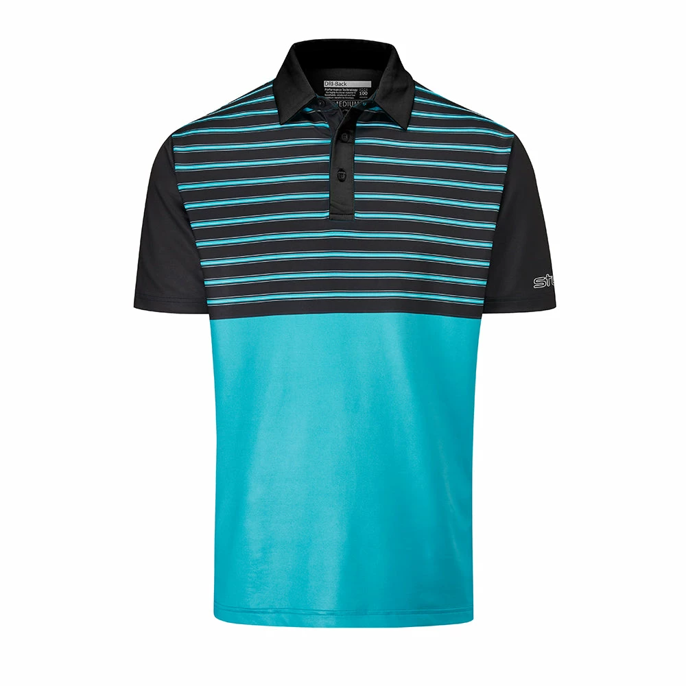 The Princeville polo features a subtle, contrasting stripe detail on the chest with a bold colour block sleeve and lower body. The statement Stuburt logo is accented on the left sleeve and back neck. The fabrication and DRI-Back moisture transfer technology allows for breathability and stretch in this polo, creating enhanced performance and comfort.