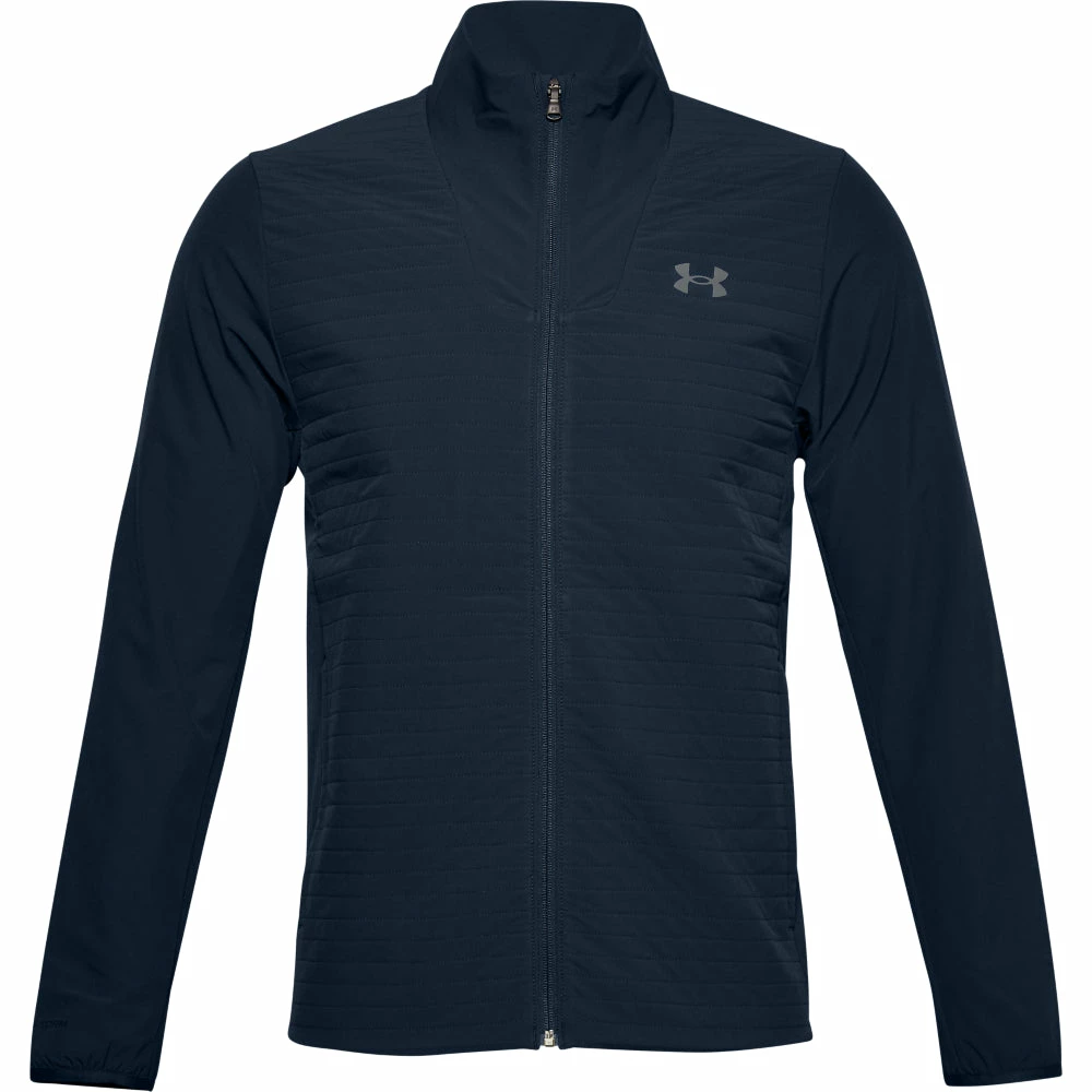 Under Armour Storm Revo Mens Golf Jacket 1356668 Under Armour Storm technology repels water without sacrificing breathability, and features durable stretch-woven fabric with lightweight insulation for the same protection as a traditional softshell with added comfort and breathability.